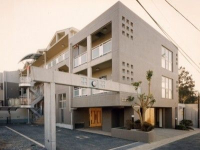1階に親世帯と趣味のオオディオルームを持つ2世帯住宅です、幅が狭く奥行きの長い敷地でしたので車の進入、駐車、玄関配置に腐心した結果伸びやかで広がりの有るアプローチになりました