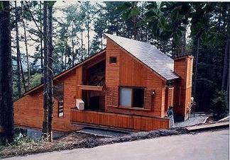 急斜面に建てられています、アプローチは山側2階から入り居間を通し谷側を見下ろしながらの進入となっており意外性のある空間を演出しています。
