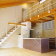 床は水蓄熱床暖房、外周はセルロースファイバー断熱材で覆われており、内部壁は珪藻土塗り壁、木部は全て無垢で自然塗料が施されています。