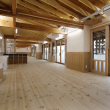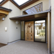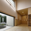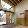 ■玄関に入ると正面に中庭が設けられ天井も高く明るく開放的な温かみのあるホールになっています、又親子の下足収納は無論天井までゆとりのある収納戸棚が壁面いっぱいに設けられて各所の収納に特段の配慮を行っています。