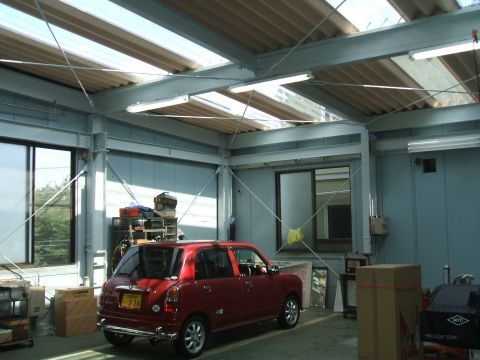 今回は新しい車検ラインを設けるにあたり梁下が確保できず嵩上げを行いました、既存の鉄骨を生かした工法を採用した為後期、工費とも大いに節約を図ることが出来ました