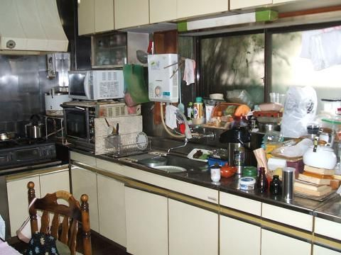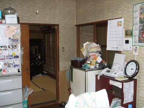 鉄骨3階建、延べ43坪の専用住宅の1階部分インテリアを甦らせる事例を解体から竣工まで工期目標は3ヶ月順次リポートして行きます。 家族構成は施主夫妻(お子様達は既に独立)+ねこ一匹、コンセプトは高齢化に向けて快適性、使い良さ、安全安心、少々リッチにが目標です、1階部分20.39坪諸室はDK、6帖茶の間、6帖和室、納戸、など他に水周り浴室、洗面、便所が現在の配置状況です。改修計画としてのアウトラインはDK、茶の間、をワンルームとし6帖の和室と一体感も出せるようにとの要望でした。基本的には外部周りサッシは既存の開口部を保ち外部にまで影響が及ばないことを前提としました。第一回報告として現況を掲載