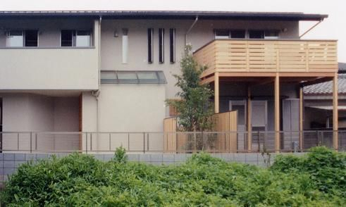 1階に親世帯と趣味のオオディオルームを持つ2世帯住宅です、幅が狭く奥行きの長い敷地でしたので車の進入、駐車、玄関配置に腐心した結果伸びやかで広がりの有るアプローチになりました