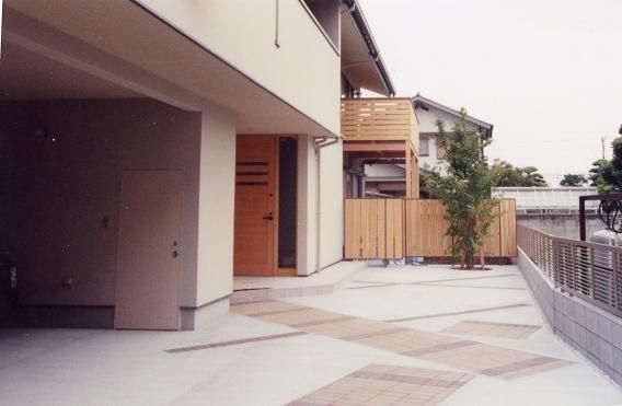 幅が狭く奥行きの長い敷地でしたので車の進入、駐車、玄関へ導きが課題でした、車の切り替えしスペースに前庭を確保、玄関を45°振る事で顕示性をだした結果広がりの有る落ち着いたアプローチにする事が出来ました