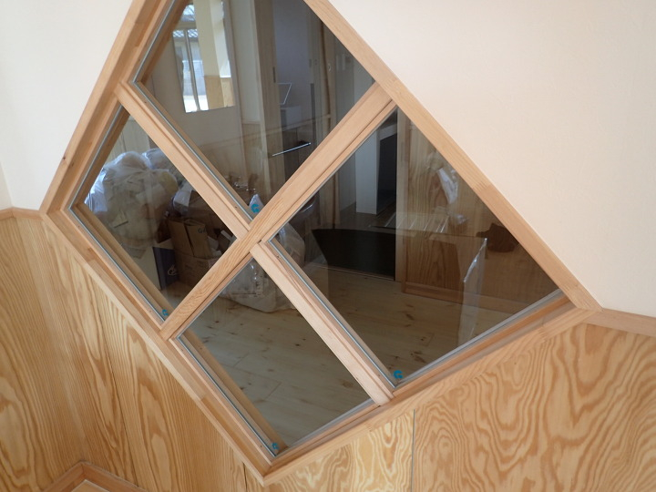 ■床:無垢赤松縁甲板張自然塗料塗布、床下には体に優しい水循環型床暖房で穏やかに温めてくれます。壁天井は珪藻土クロス貼りで少しでも調湿、調臭効果を発揮してくれています。