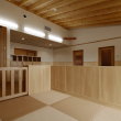 ■ 屋根の木造構造材がふんだんに感じられ、天井が高い力強い育児室です。