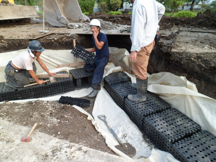 一方河川の隣地と言う事もあり地盤の不安定さ、洪水などの懸念が想定されますが地盤の改良、本体構造など設計方法により対策(後記述)を施しています。
