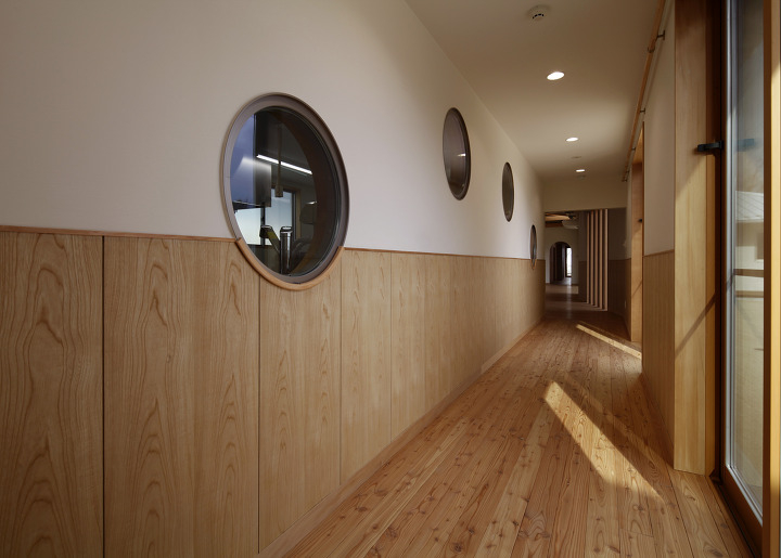 ■ 廊 下 : 厨房に面した壁面にランダムな位置に丸窓を設け調理の様子を見ることが出来ます